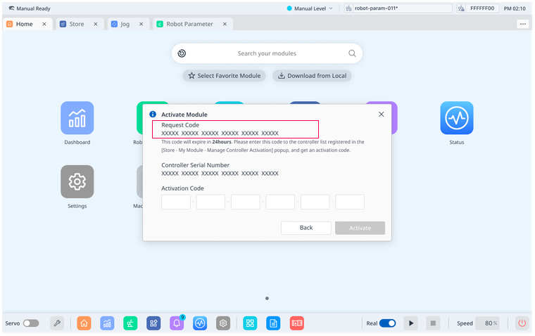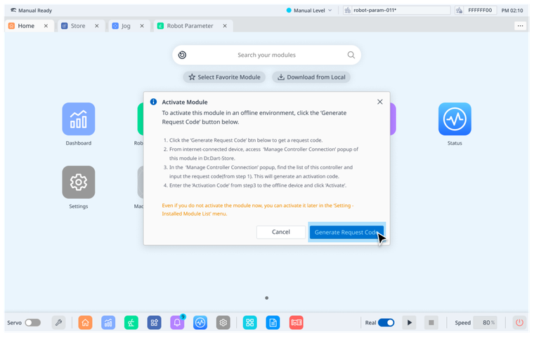 Activate Module Offlinepopup will be displayed as follows. Then, clickGenerate Request Code.