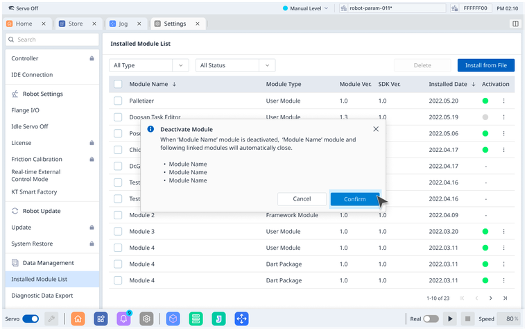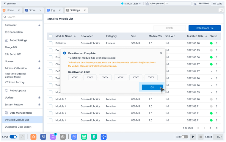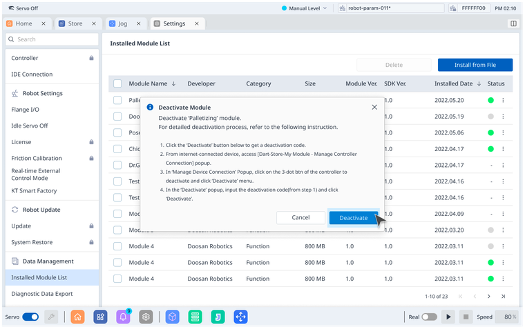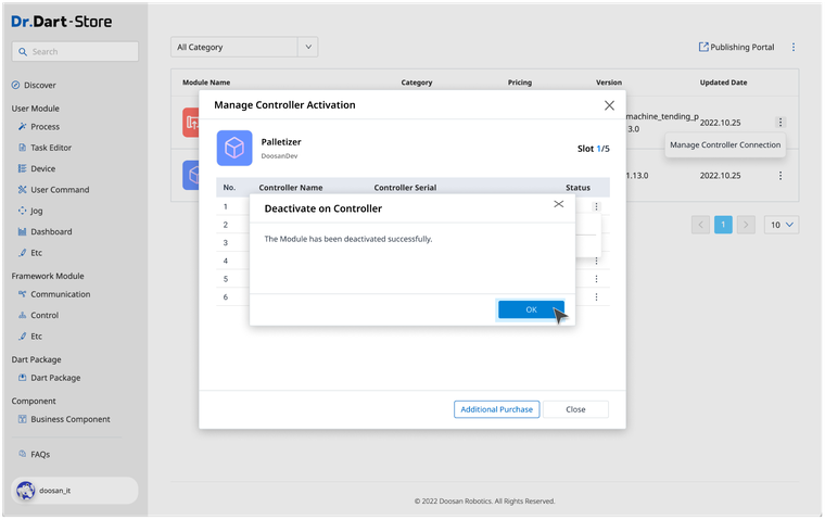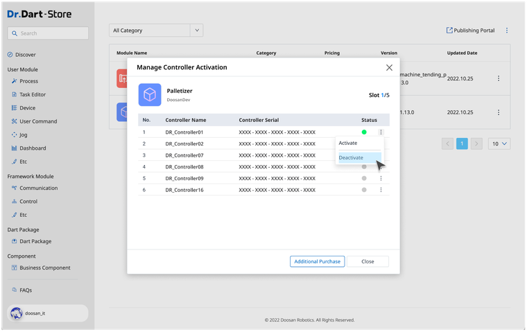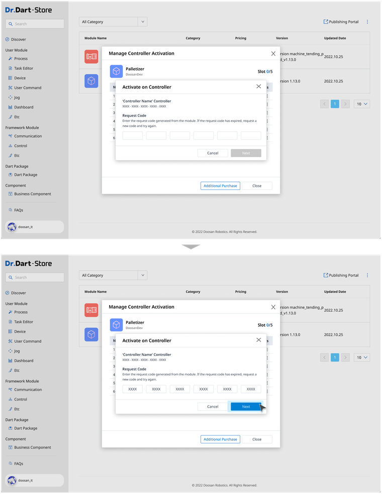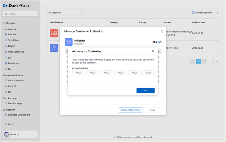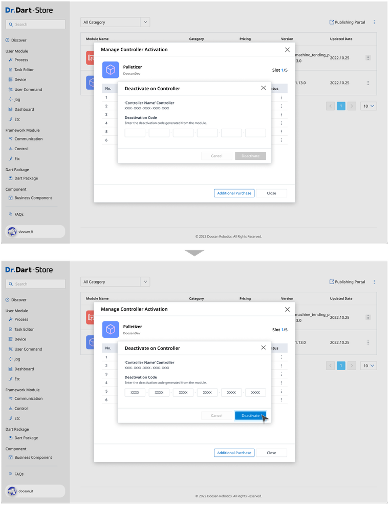 When you want to deactivate your module in an offline environment, you must enter a Deactivation Code generated from Dart-Platform to Dart-Store.