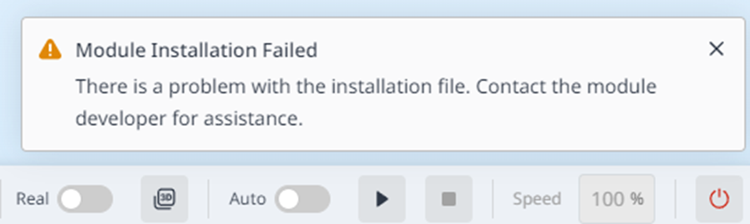Installation errors often occur when you select a module incompatible with Dart-Platform or an incomplete module. Every time you install the error software, an error message will appear as below. In this case, remove the file and re-install it from step 1.