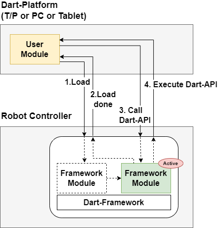 It is a method using the function of Framework Module by calling Dart-API after activating (Load) Framework Module of the function you want in the User Module. How to use is as follows.