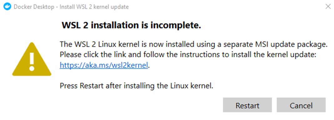 If the error “WSL 2 installation is incomplete” occurs in Docker Desktop, you should perform the following methods: