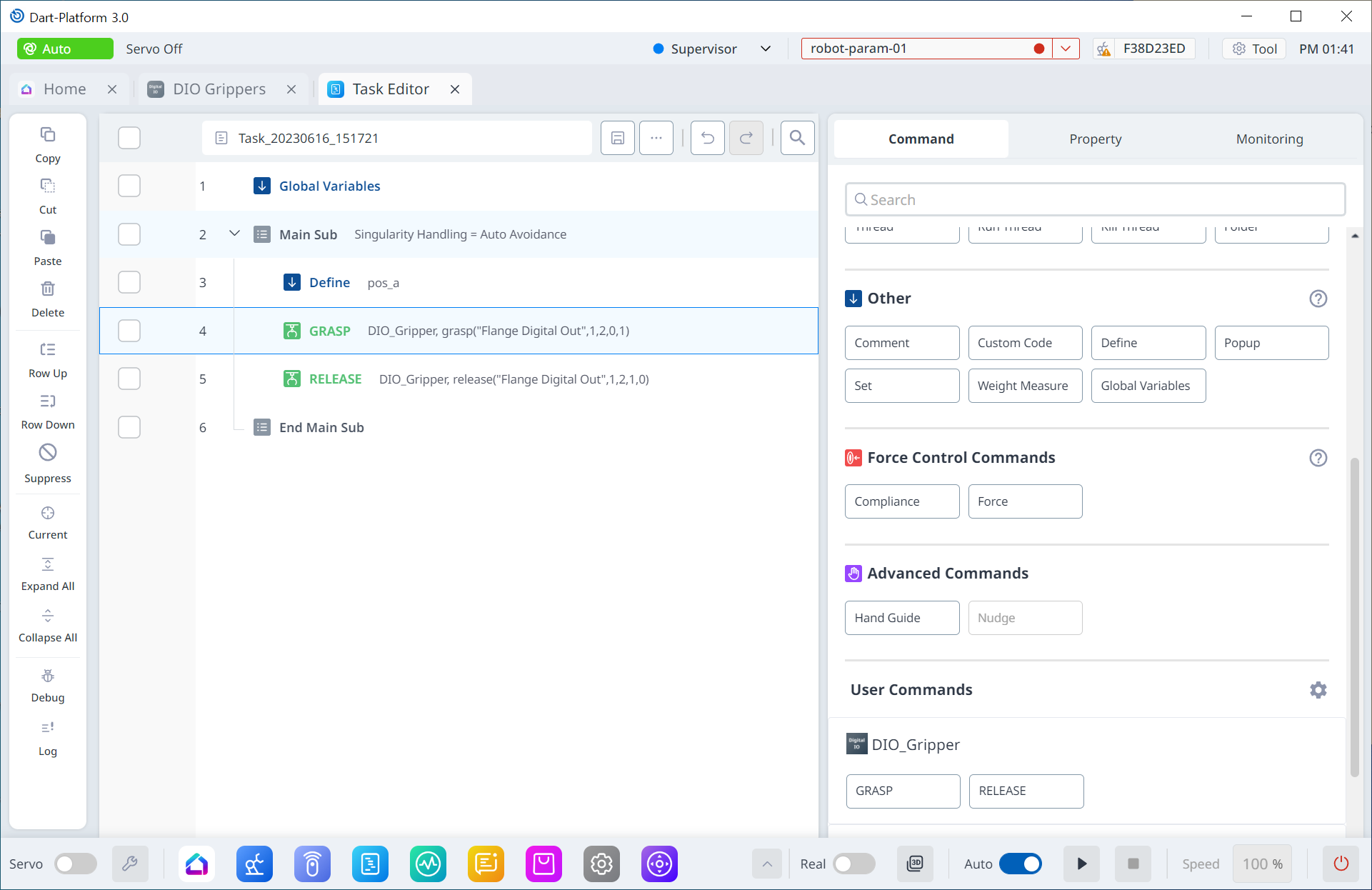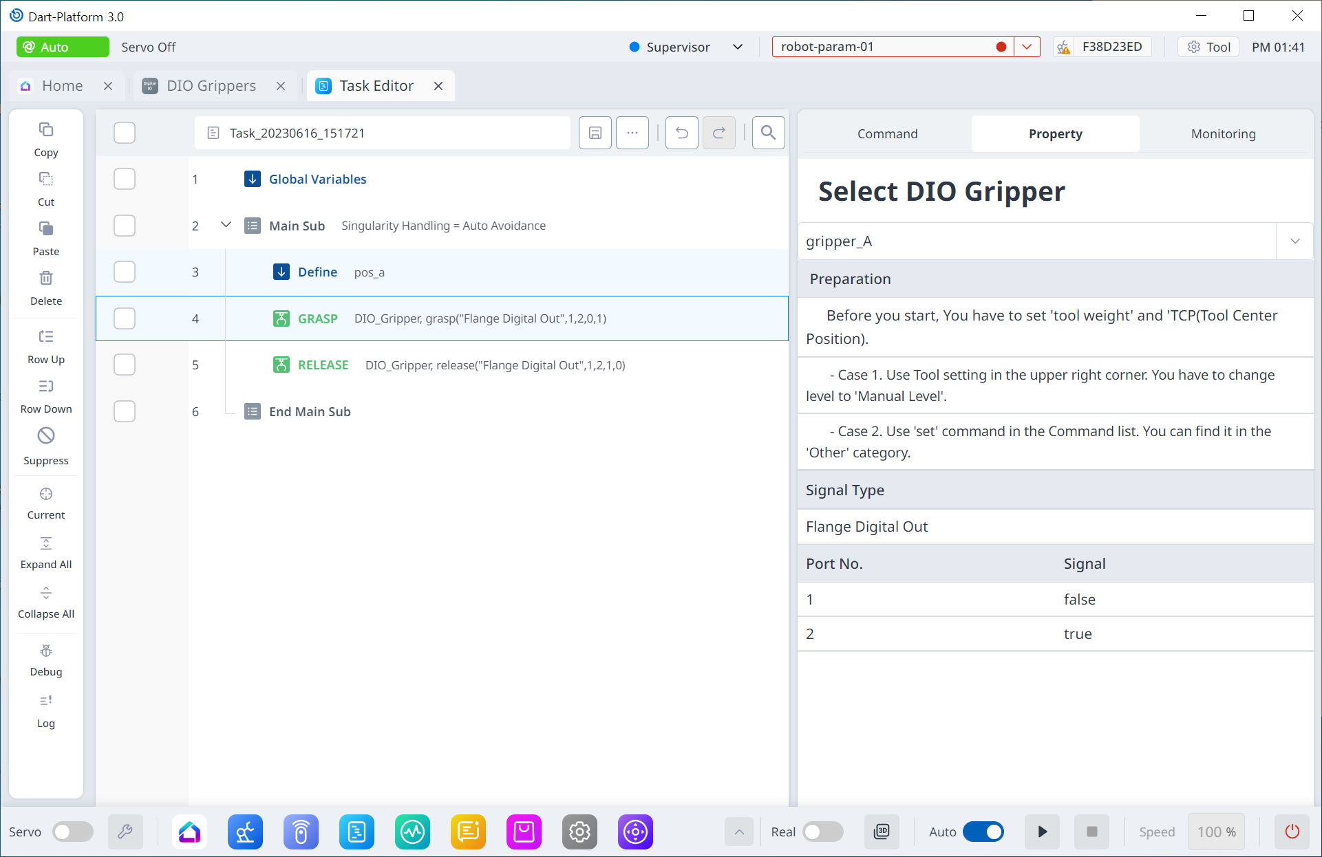 | 4 | user-module-sample-dio-gripper Keyword: | This sample is a modified Digital I/O module provided from the Device Module UI templates in Dr.Dart-IDE. In this Module, you can
