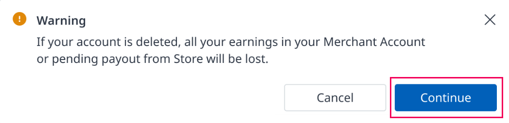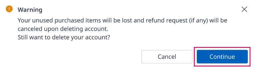 Continue buttonif you want to delete your account completely.