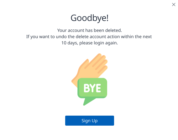After 10 days, since you deleted the account successfully when you log in with the deleted account, the screen will show a popup like the one below: