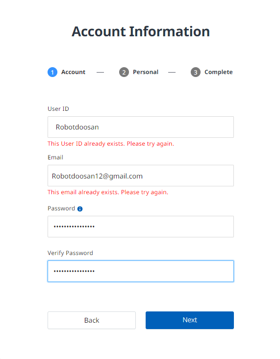 Besides, after deleting the account, when you sign up for a new account with the ID/ Email of deleted account, the screen will show these error messages.